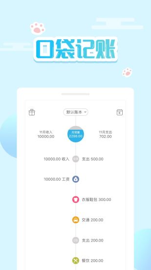 口袋记账最新版本是一款轻量级的手机记账应用工具软件。在口袋记账最新版本中为用户提供了2秒快速记账的服务。用户直接点击屏幕上的“+”号键便可进行快速记账。