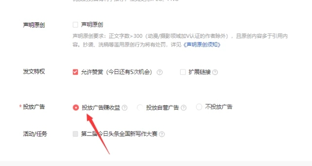 发布视频时,左下角,一般都是会有个广告收益,根据你自己选择,可以投放平台的,也可以投放自己的。一定要打上勾,不然是没钱的。